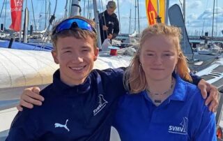 "Max Georgi und Lissa Müncheberg sind neu im 470er. Starkwind und andere Widrigkeiten machten ihren RegattaEinstand bei der Warnemünder Woche zum Abenteuer." "Dienstagmorgen, kurz vor neun Uhr morgens bei der Warnemünder Woche. Lissa Müncheberg und Max Georgi sind schon an ihrem Boot, bereiten alles für den Start vor: die Segel, die Schoten. Am vierten Wettfahrttag in ihrer 470er-Klasse soll es endlich klappen – der erste gemeinsame